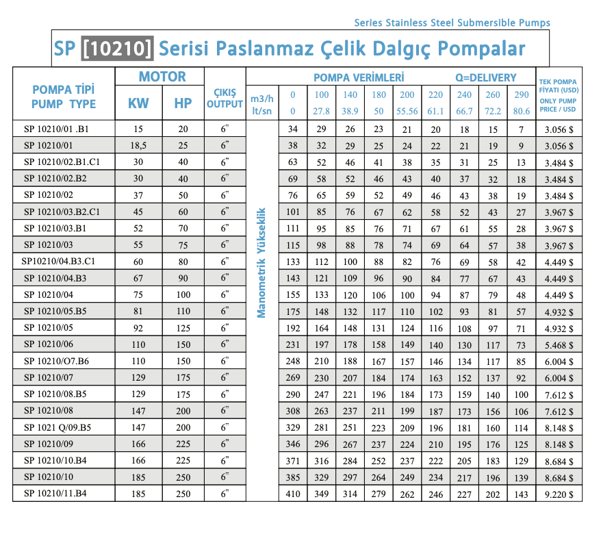 SP [10210] Serisi Paslanmaz Çelik Dalgıç Pompalar