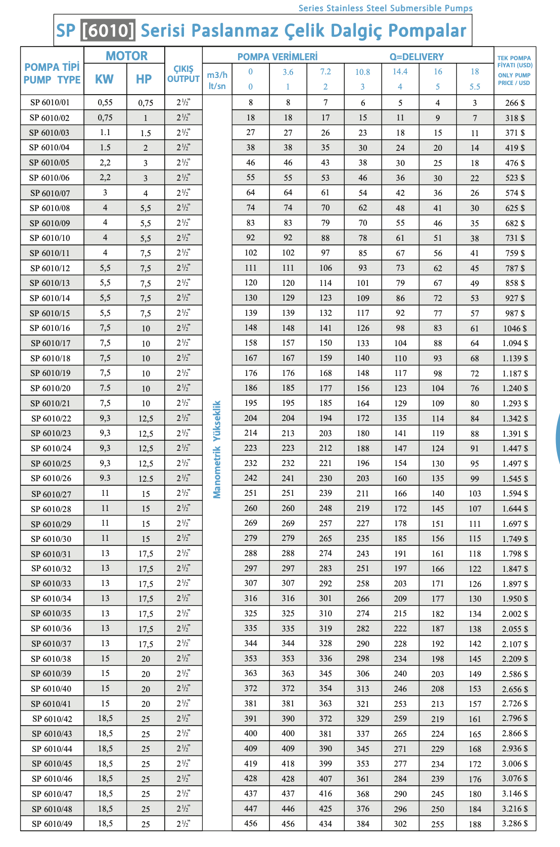 SP [6010] Serisi Paslanmaz Çelik Dalgıç Pompalar